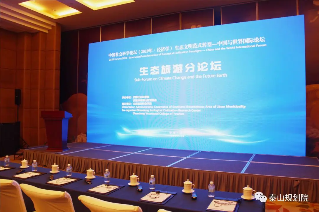 2019年10月31日,中国社会科学论坛(2019年∙经济学)生态文明范式转型——中国与世界国际论坛暨“生态旅游分论坛”在山东大厦举行。常德军院长以《六合模式——乡村生态旅游的新探索》为主题作了演讲,结合乡村振兴的五大振兴,提出“六合模式”乡村生态旅游发展的新模式,并以泰山和居为具体案例加以分析。